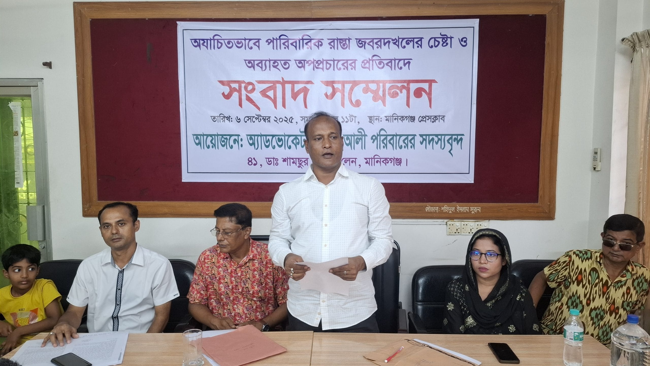 মানিকগঞ্জে পারিবারিক রাস্তা অনধিকার বলে জবরদখলের চেষ্টা ও অব্যাহত অপপ্রচারের প্রতিবাদে সংবাদ সম্মেলন করেছেন ভুক্তভোগী পরিবার।