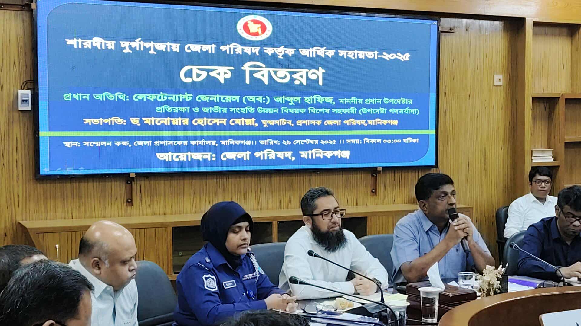 সোমবার (২৯ সেপ্টেম্বর) মানিকগঞ্জ জেলা পরিষদের উদ্যোগে শারদীয় দুর্গাপূজা উপলক্ষে আর্থিক সহায়তার চেক বিতরণ ও আইন-শৃঙ্খলা বিষয়ক মতবিনিময় সভায় তিনি এ কথা বলেন।