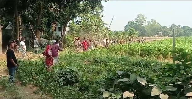 প্রত্যক্ষদর্শীরা জানান, দীর্ঘদিন ধরে দুই গ্রামের মধ্যে একটি জমির মালিকানা নিয়ে দ্বন্দ্ব চলছিল। সোমবার সকালে জমিতে কাজ করতে গেলে উভয় পক্ষের মধ্যে বিতণ্ডা থেকে শুরু হয় ইটপাটকেল ও লাঠিসোঁটার যুদ্ধ।