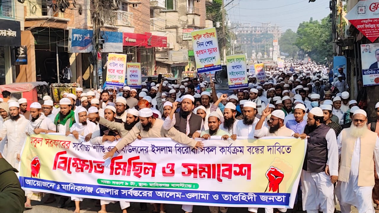 বিক্ষোভে উত্তাল মানিকগঞ্জ : তৌহিদী জনতা ও বাউল শিল্পীদের পাল্টাপাল্টি ধাওয়া, আহত ৪
