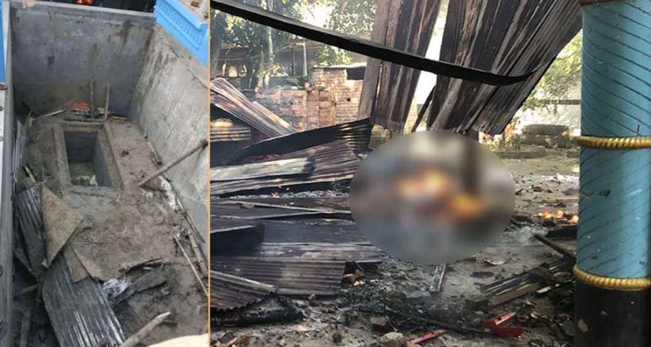 প্রথম দফার হামলার পর দ্বিতীয় দফায় বাড়িতে গিয়ে কবর খুঁড়ে মরদেহ উত্তোলন করে তারা। পরে সেটি মহাসড়কের মোড়ে নিয়ে আগুন দিয়ে পুড়িয়ে ফেলে।