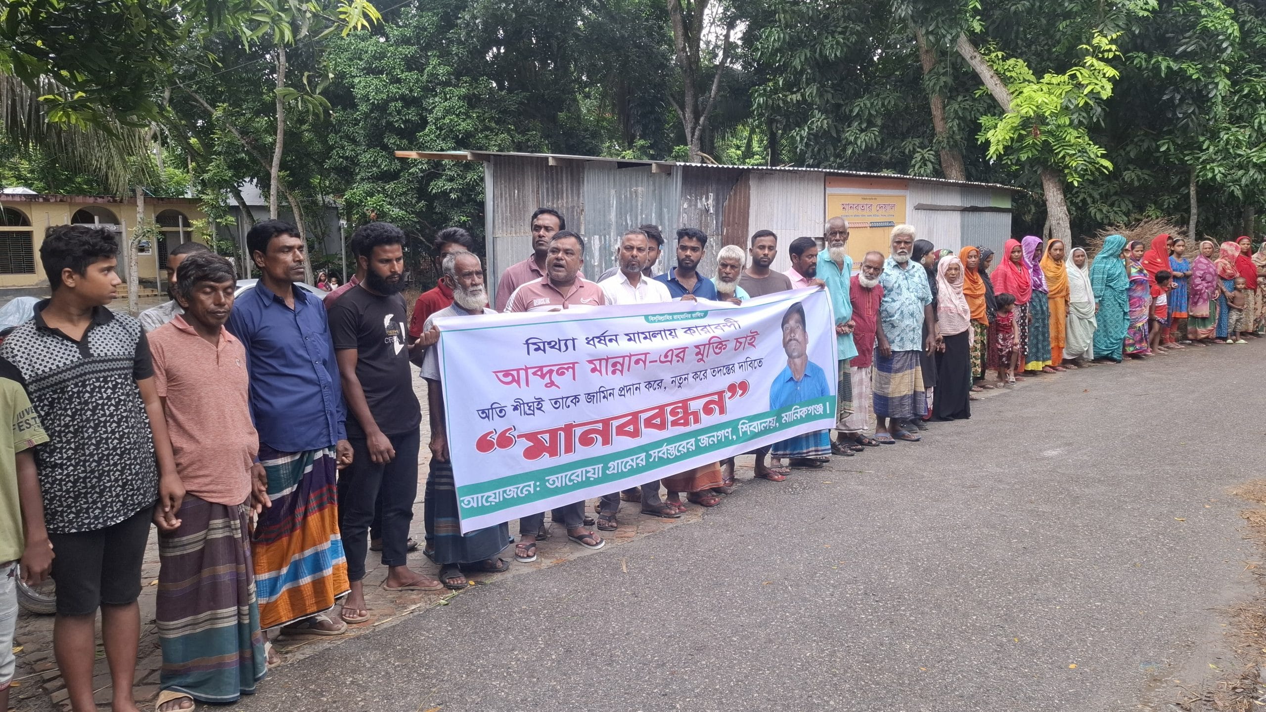 ধর্ষণ মামলায় কারাবন্দি মান্নানকে নিরপরাধ দাবি করে এলাকাবাসীর মানববন্ধন