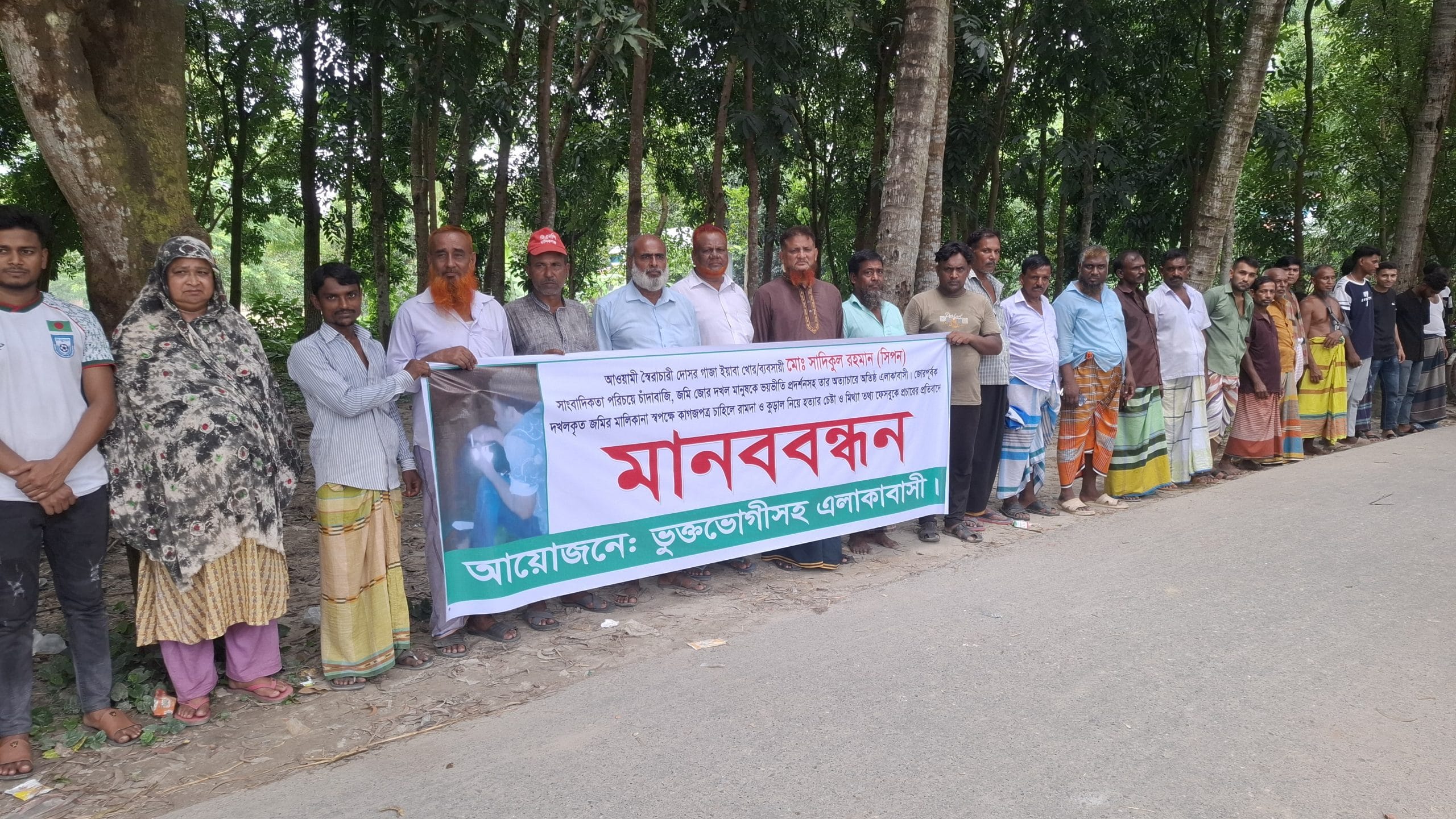 চাঁদাবাজি ও জমি দখলের প্রতিবাদে এলাকাবাসীর মানববন্ধন