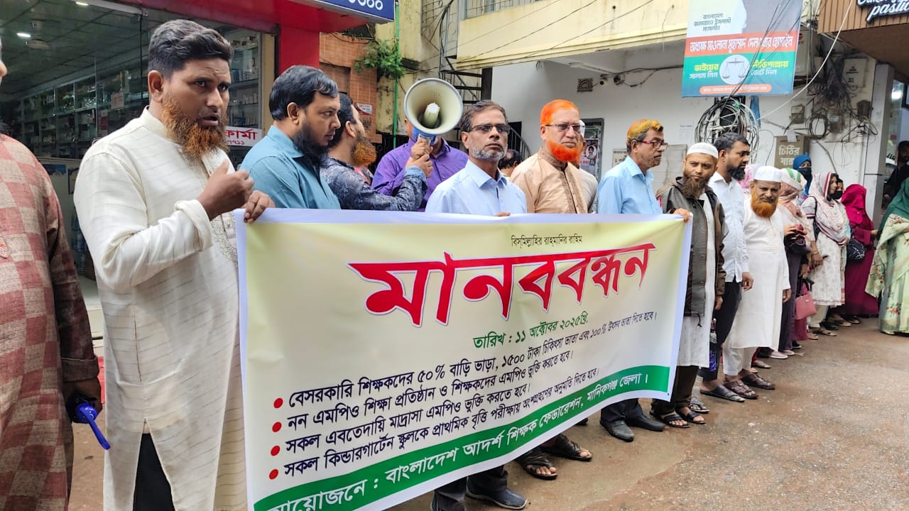 ভাতা ও এমপিওভুক্তির দাবিতে মানিকগঞ্জে শিক্ষকদের মানববন্ধন